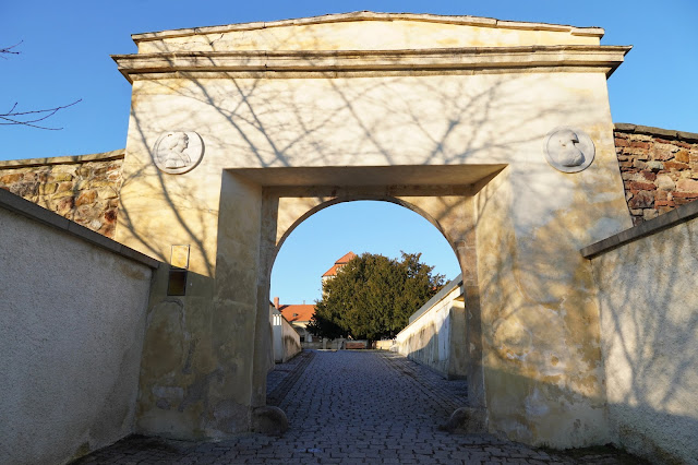 Pro druhý díl publikace plné fotek staré, zmizelé podoby Moravské Třebové (mimochodem před časem jsem také takové ohlédnutí do minulosti dělal) jsem si zkusmo po obkroužení protějšího parku, kde narazíte na Schillera, Smetanu či Kasparidese, a muzea, toho času pro veřejnost uzavřeného, zašel do kavárny umístěné v areálu františkánského kláštera, který přes všechny peripetie a adaptace (mimo jiné tu je i jídelna pro středoškoláky) společně s kostelem sv. Josefa patří k významným barokním památkám města. Do kostela jsem se nedostal, ovšem hned vedle jsem si všiml směrovky "tudy k betlému", takže jsem mrkl za kostel, byť v areálu truhlářství. Na Třebovou jsem neměl příliš času, chtěl jsem stihnout nějaký rozumný vlak na Olomouc, takže jsem náměstí víceméně přeběhl a zamířil si to přímo na zámek, který se vždy snažím nevynechat, protože pohled na jeho arkády se mi asi nikdy neomrzí (také je tu mimo jiné veřejné WC – to se hodí si pamatovat). Oželet jsem ale musel výšlap na Křížový vrch, nestíhal bych, podíval jsem se jen ke kamennému mostu přes Třebůvku pod ním a kolem bývalého piaristického gymnázia, kde dnes sídlí městský úřad, jsem spěchal na vlak. Ne, že by časem nejel další, ale říkal jsem si, že bych chtěl být doma před šestou.