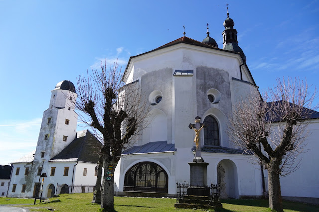 To my, posíleni o dva další kusy do počtu, vystoupili již v Branné, naposledy jsme tu z vlaku vyskákali před sedmi lety, když jsme se vydali ke skalisku Pasák a vodopádům na Hučavě. Tentokrát jsme kolem Mariánského pramene vystoupali rovnou do městečka – a tu, mezi jeho vesměs renesančními dominantami, nastalo dělení a loučení. Většina skupiny vyrazila na naplánovanou trasu, zatímco já "oberlen" nechtěl příliš pokoušet nohu a společně s jednou větračkou (díky, J.!) jsme zůstali v Branné. Podívali jsme se na nádvoří zámku, obhlédli kostel i sousední oprýskané fojtství a pak jsme si kousek vyšlápli do protějšího kopečku kvůli fotce panoramatu obce.